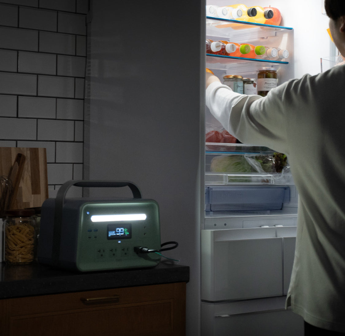 3日間の停電でも、当社の蓄電システムが冷蔵庫に安定した電力を供給し、食材の鮮度をしっかりキープ。